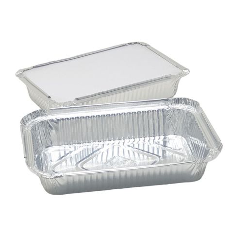 صحن قصدير بروستد أساس مستطيل بالغطاء رقم 1004 شدة 100 حبة مقاس 15 * 25 * 6 سم