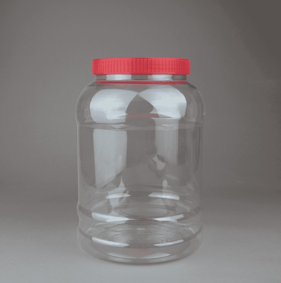 برطمان دائري بلاستيك شفاف عسق بالغطاء الأحمر 3 لتر * 120 مل بالحبة