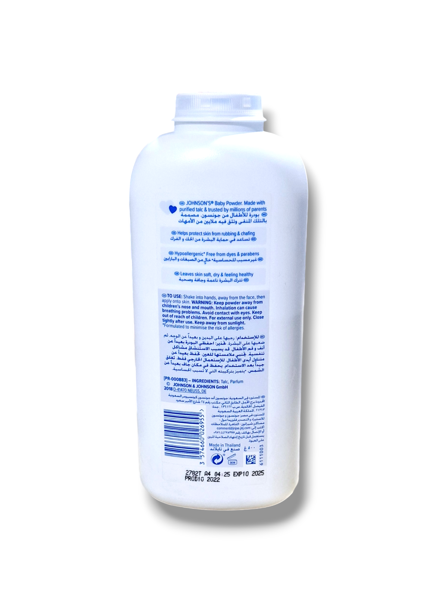 بودرة جونسون تركيبة متطورة تم اختبارها من قبل الخبراء واطباء الجلدية ● تمنح الجلد شعور منعش ومريح ● تحافظ على جفاف البشرة دون أن تسبب انسداد المسام ● منتج خالي من البارابين والكحول والصبغات ● تقي من الالتهابات الجلدية والطفح الجلدية في ايام الصيف ذات الرطوبة العالية ● لا تسبب حساسية مهما كان نوع البشرة ● مناسبة للرضع والأطفال والبالغين