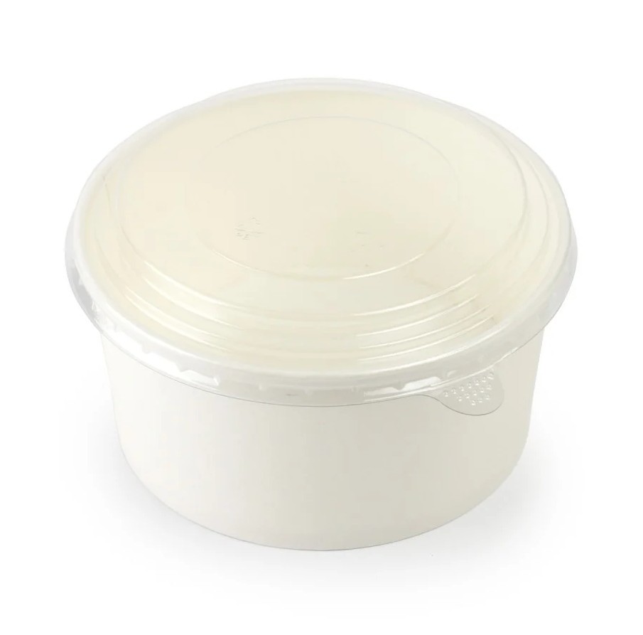 زبدية ورق أبيض دائرية بالغطاء لحفظ وتعبئة الطعام والمأكولات الطازجة والشوربة بأنواعها , للاستخدام بالمطاعم والمنازل اثناء الخروج في العطلات الأسبوعية واوقات الراحة وأيضا استخدماها في العمل مثل الانش بوكس وقت الغداء