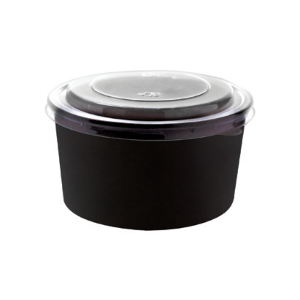 زبدية ورق أسود دائرية بالغطاء لحفظ وتعبئة الطعام والمأكولات الطازجة والشوربة بأنواعها , للاستخدام بالمطاعم والمنازل اثناء الخروج في العطلات الأسبوعية واوقات الراحة وأيضا استخدماها في العمل مثل الانش بوكس وقت الغداء