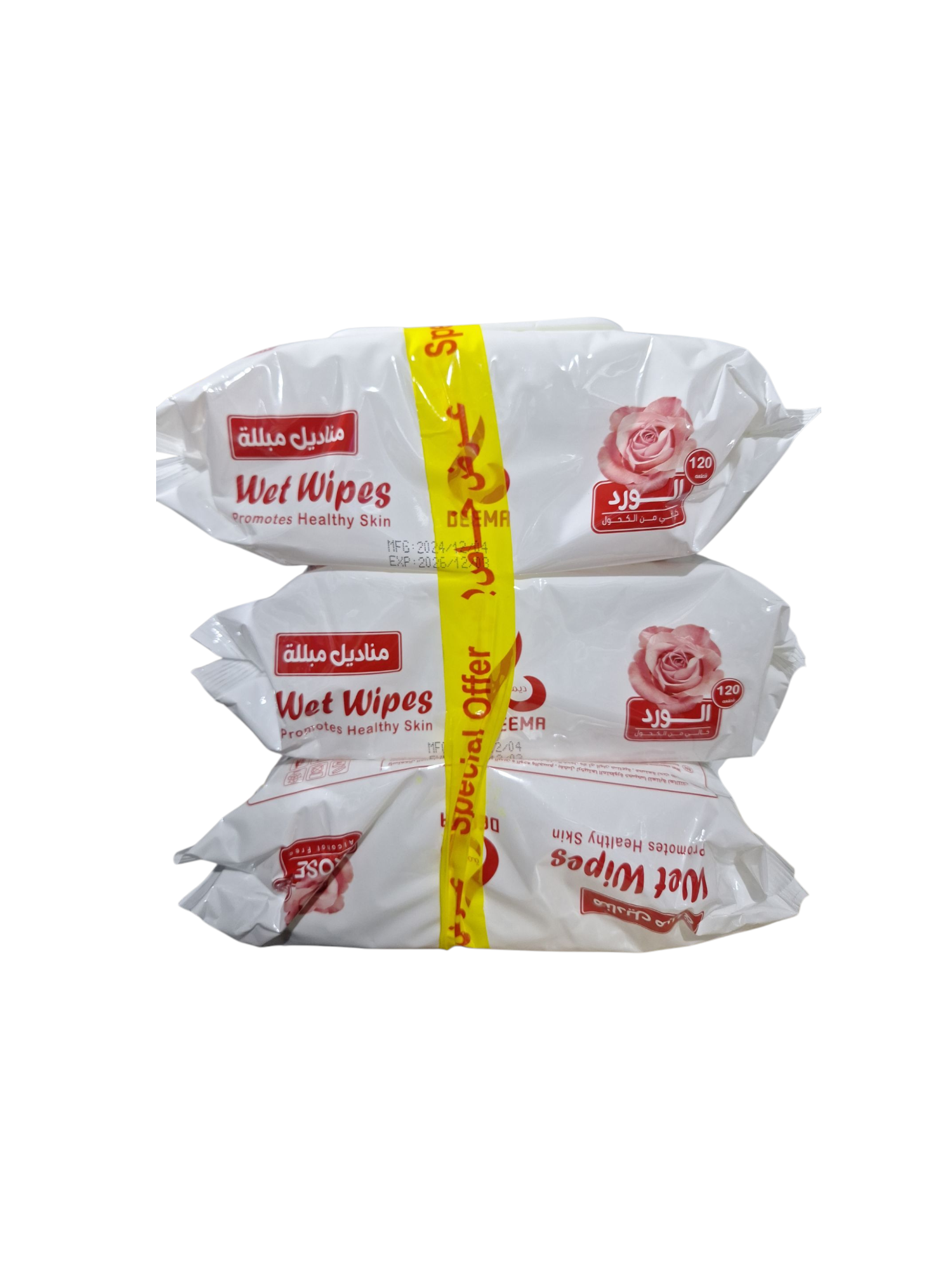 مناديل مبللة ديما 120 منديل 3 شدة برائحة الورد