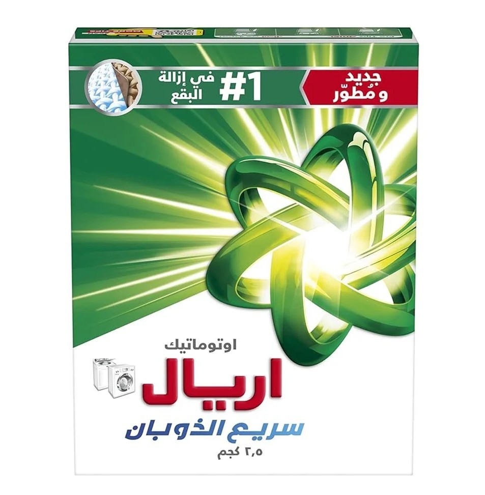 اريال تركيبة سريعة الذوبان: مصنوع ليذوب بسرعة في الغسالة. لإزالة البقع العميقة: التركيبة المحسنة تتغلغل في ألياف القماش، لتفكيك وإزالة حتى أصعب البقع بفعالية. لا يترك بقايا: مسحوق غسيل اريال سريع المفعول يشطف بسهولة دون ترك أثر. لجميع أنواع الغسيل: مناسب لمجموعة كبيرة من الأقمشة والملابس الملونة، وهذا ما يمكنه من تلبيه مختلف الاحتياجات.