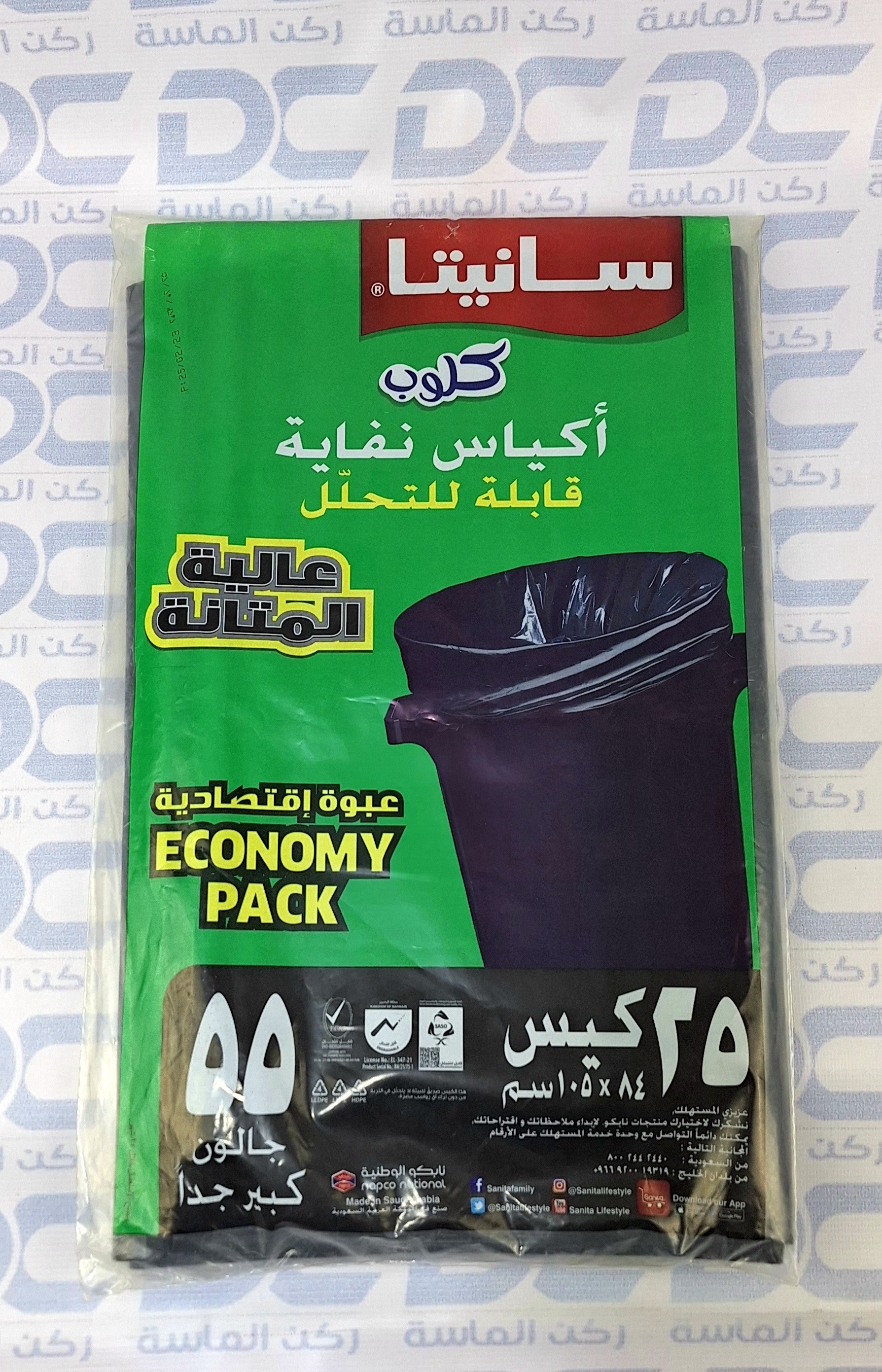 أكياس نفاية سانيتا كلوب 25 كيس 55 جالون كبير جدا 84 * 105 سم