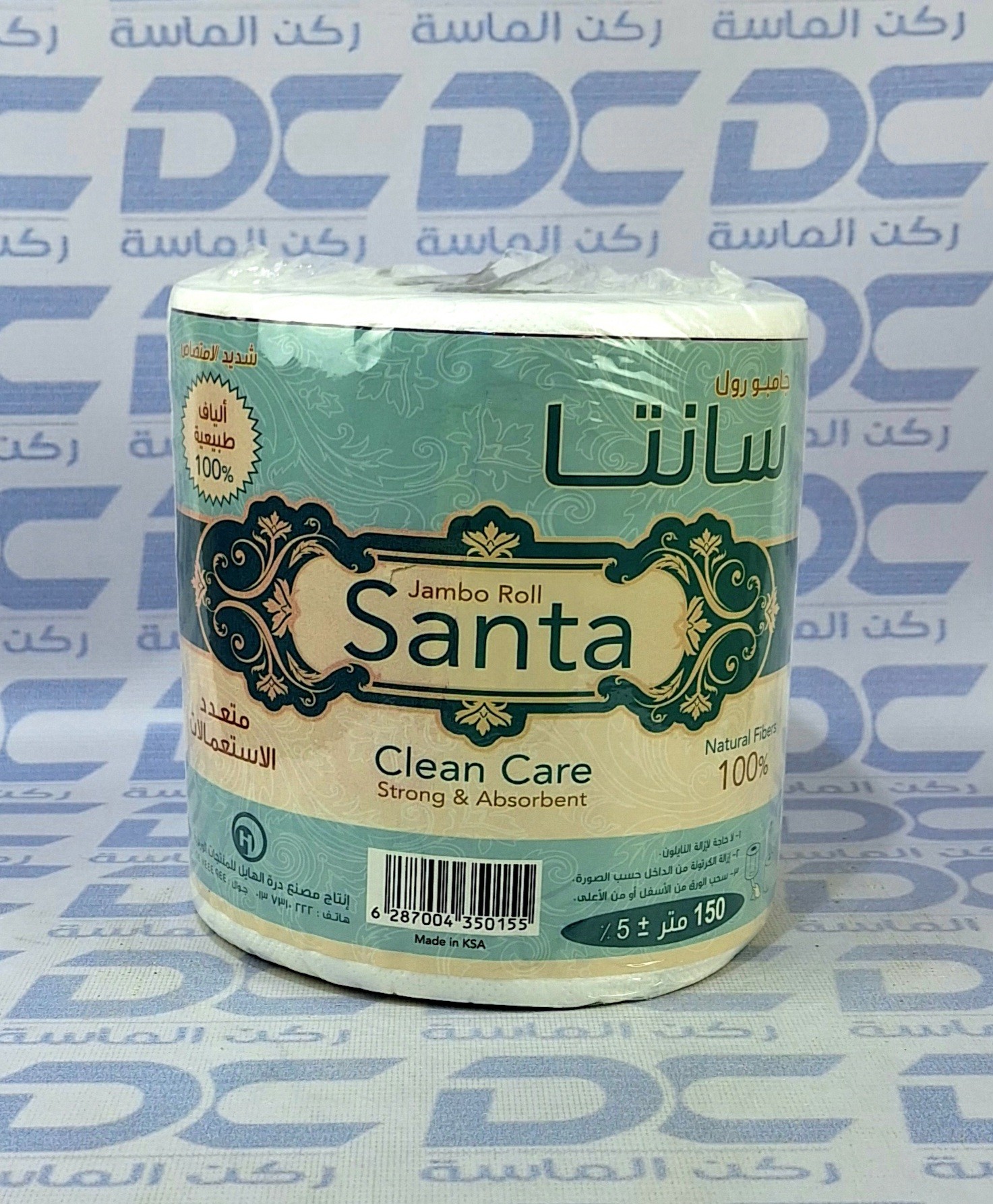 مناديل سانتا جامبو رول كبير شديد الامتصاص متعدد الاستعمالات ألياف طبيعية 100%