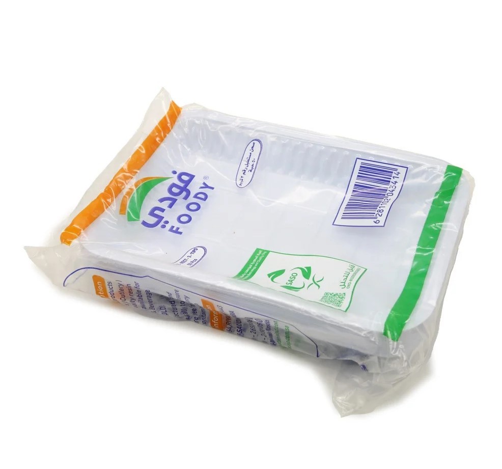 صحن بلاستيك مستطيل أبيض فودي رقم 3 شدة 50 حبة للعديد من الاستخدامات والتحضير السريع